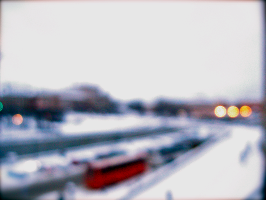 C’est la neige, le froid et la nuit qui ont eu raison de moi. J’avais oublié l’existence de ma caméra jusqu’à la tombée (prématurée) de la nuit. J’ai souvent du mal à photographier la nuit, mais ici, la lumière dans le noir est particulière, comme si le ciel était plus vaste, comme si le paysage recevait la lune et les étoiles avec une sobriété presque idéale, comme un fil d’éclairage lisse et précis sur une scène. Des clairs-obscurs facilement poétiques, esthétiques à souhait. On ne s’attend pas à moins de cette ville parfaite.