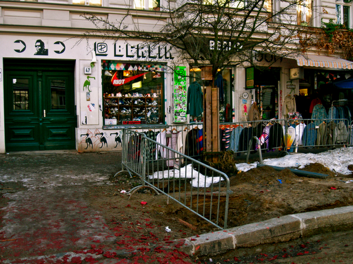 Un an et demi est passé depuis ma première visite à Berlin. Dès mon départ, j’avais lancé au loin la promesse de mon retour. Je me réjouis de voir que cette promesse fut tenue. Je revois la ville dans un tout autre contexte. L’an dernier, j’étais accompagné de mon amoureux ; nous avions fait le périple européen typiquement américain : de brefs sauts d’une ville à l’autre dont le mouvement constant nous confrontait sans cesse, au final, à nous-mêmes. Berlin tombait vers la fin de notre route, douzième ville sur treize, sixième pays sur sept. Le mois d’août était fidèle à lui-même, ici comme ailleurs : la ville n’était plus qu’activités culturelles, touristes et chaleur. Vu les circonstances et l’épuisement, nous avions passé le clair de notre temps à déambuler véritablement et à éviter le chaos en nous posant dans des cafés et des bars pour regarder la ville changer de visage au rythme des pas effrénés des touristes. La promesse du retour n’était pas innocente : j’ai quitté Berlin avec une réelle envie de la voir à son vrai jour (si une telle chose est possible pour un étranger), débarrassée des intrus dont je fais encore partie, paradoxalement.