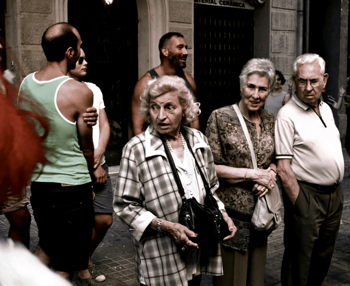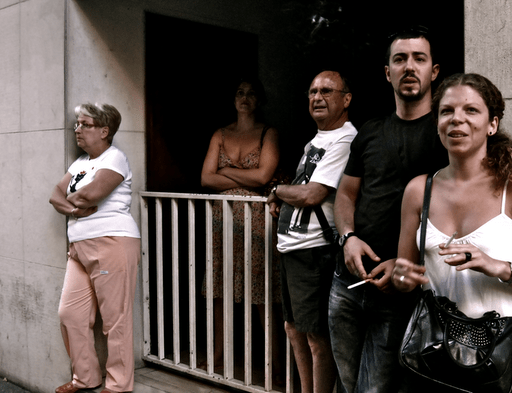 C’est en voyant un enfant pleurer à la vue d’une créature effectivement terrifiante que mon attention fut attirée ailleurs, vers les autres qui, comme moi, étaient là pour voir. Les cris de l’enfant, puis les rires d’une bande à mes côtés, ont réglé le problème que je voyais dans l’immobilité : la position de spectateur n’était plus passive. Qu’ils se réfugient derrière leurs caméras ou leurs cris, tous ceux qui sont ici réagissent. Certains rient, d’autres pleurent, la plupart sourient à grandes dents, semblent jouir d’une rare ivresse. D’autres encore sont perplexes, voire agacés, mais nul n’est là sans le vouloir, nul ne dort ni ne ferme les yeux. Les spectateurs étant plus difficiles à photographier, j’ai tout de même déambulé parmi vieillards dérangés, femmes seules et enjouées, couples ouverts, enfants curieux, afin de faire le lien et de briser la frontière entre ceux qui paradent et ceux qui regardent.