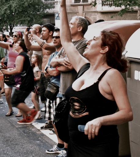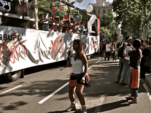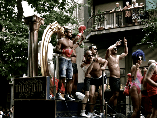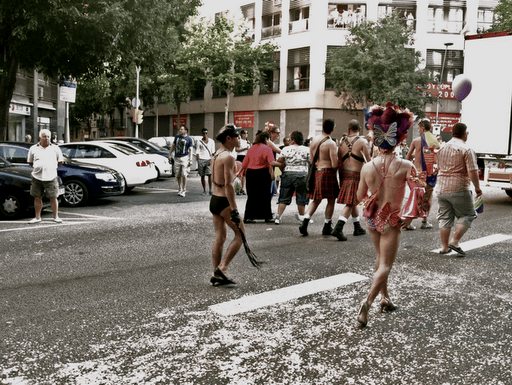 Rapidement, je me suis aperçu que le meilleur moyen d’y arriver n’était pas sur le trottoir, mais bien dans la rue, parmi les créatures, les nudistes, les sadomasochistes, les associations, les bears, les drag-queens, les monstres, les cracheurs de feu, les clowns, les jongleurs, les chars allégoriques, les discothèques de fortune, les manifestants et surtout les autres photographes : je n’étais pas du tout le seul à me joindre à la rue et j’eus vite le même visage euphorique de celles et ceux qui s’y promenaient. Là, entre spectateurs et acteurs, un lien dynamique s’opérait. À cet endroit, la dimension collective se sentait à vif, concrètement.