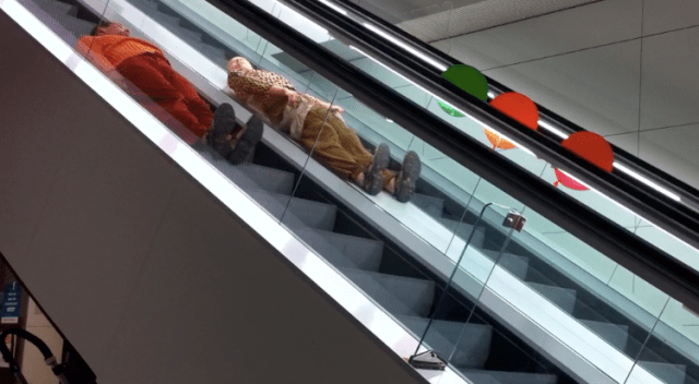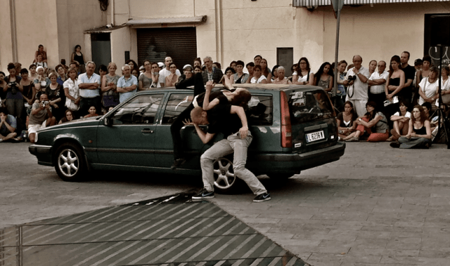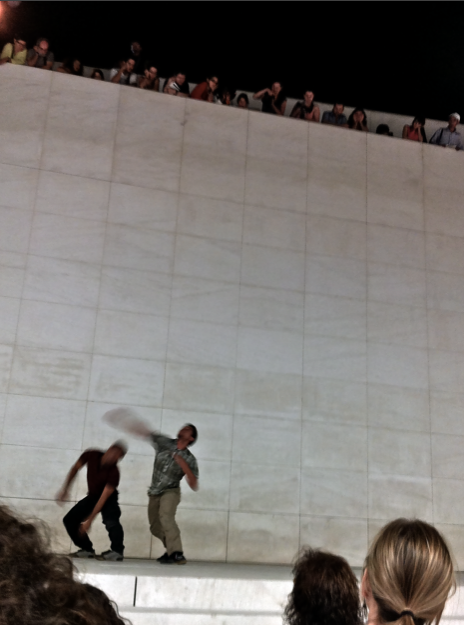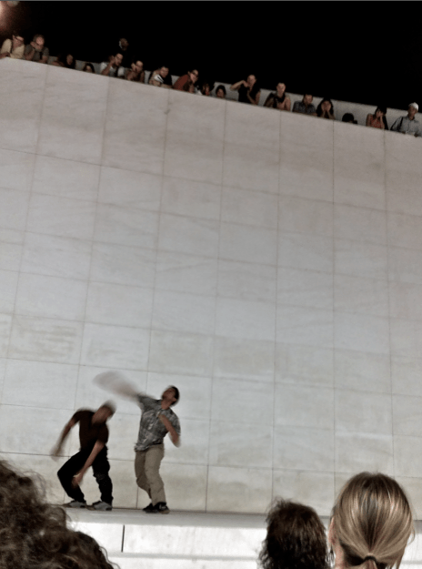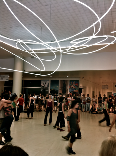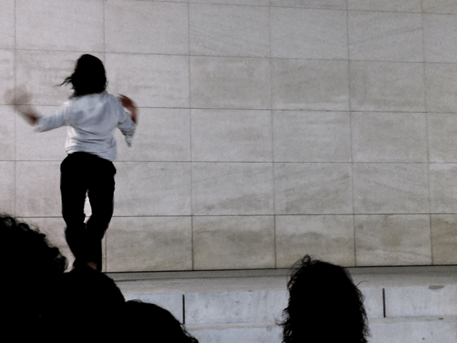 Il s’agit d’un festival de danse dans l’espace public. Une trentaine de petites performances avaient lieu ici et là pendant une semaine, toutes si différentes les unes des autres que cela finissait par donner la nausée. Une beauté se dégageait pourtant de l’événement, appuyée par le nombre impressionnant de spectateurs. J’ai tenté de photographier certaines des performances malgré le peu de lumière et les divers mouvements, comme quoi la danse ne se fixe pas. C’est là que mes jugements se sont cachés, parmi la masse de gens attentifs, parmi les gestes des danseurs suivis par les miens alors que je déambulais d’une performance à l’autre. La danse se critique, je l’ai fait une fois chez moi, mais pas le mouvement. Cela fait des années que je me mets en mouvement, que ce soit par mes pas errants, mes voyages ou mon écriture. C’est bien pour cette raison que je suis – que je bouge – ici, ou ailleurs. Je ne devrai pas l’oublier, une fois rentré à Montréal, malgré que je n’aie absolument pas l’intention d’édulcorer mes critiques. Encore une fois, la question n’est pas là.