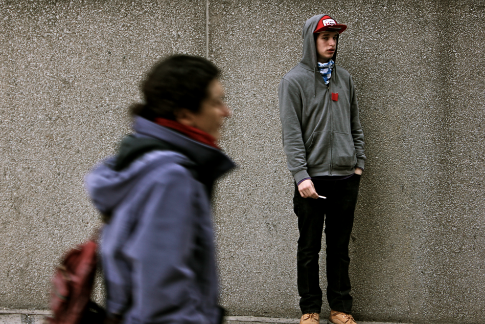 En théorie, manifester n’est pas déambuler. Le corps n’est pas libre de tout mouvement et les yeux ne portent pas loin, sans compter que l’itinéraire, bien souvent, est défini à l’avance. Il y a cependant quelques aspects qui rappellent l’errance. Celui du regard, entre autres, constamment stimulé, sautant d’une nuque à une pancarte, d’un policier à un spectateur au 15e étage de son appartement. Le regard cherche ainsi tous les détails, insignifiants en soi, mais dont le simple fait d’être vus les transforme en symboles de la cause, de l’événement et de la marche. Et d’un coup, le corps s’oublie, la fatigue se tait, et l’on suit le courant, peu importe où il mène.