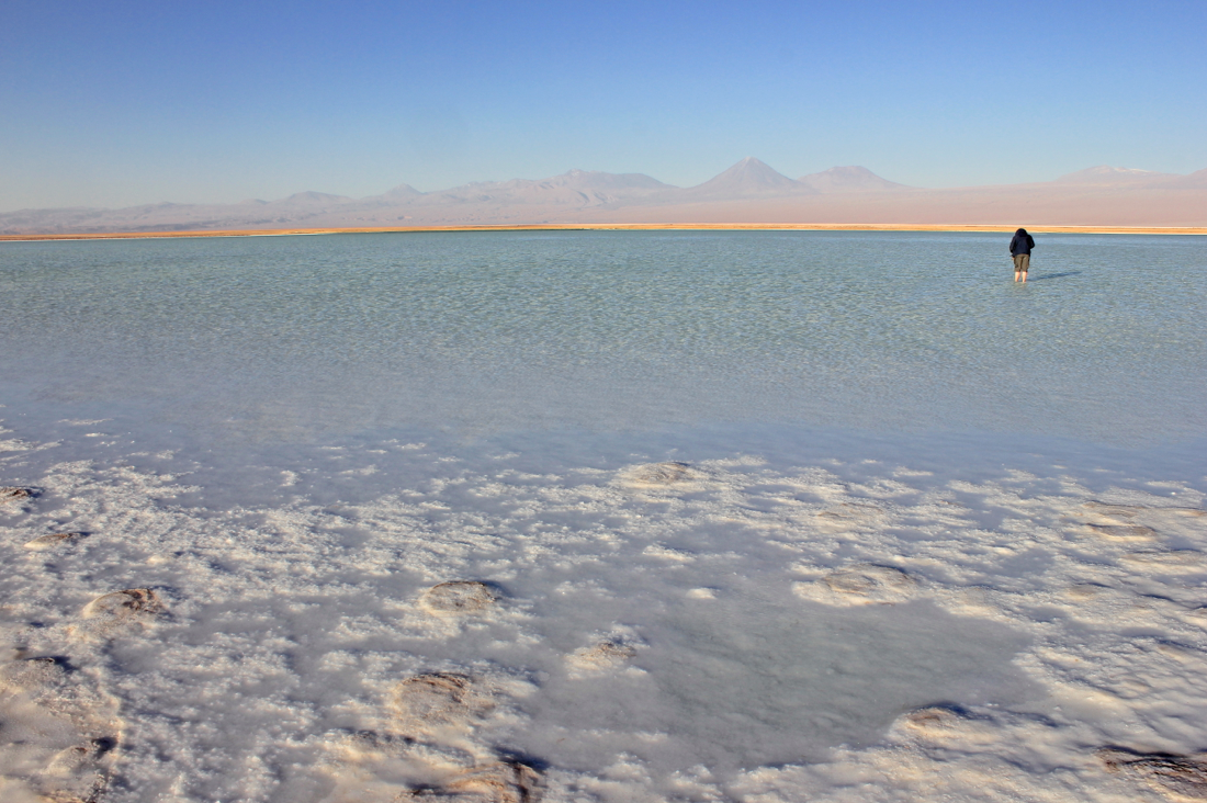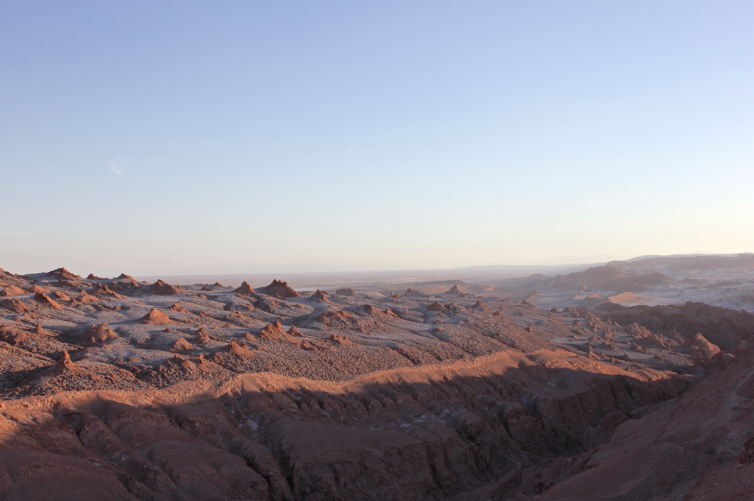 Mais, à l’instar du film de Guzmán, les origines se tractent aussi avec le regard baigné de ce qui nous dépasse, le corps à même les espaces naturels qui nous définissent autant qu’ils nous rejettent : c’est la main dans le sable, dans le sel et dans les cendres volcaniques qu’on découvre les petits éclats d’os des disparus, c’est les yeux suivant le mouvement des vagues qu’on sent le parfum marin de l’enfance, c’est confronté à l’immensité de la Cordillère des Andes qu’on comprend d’où vient la fascination des montagnes qu’on dessinait jadis innocemment. J’ai beau être un parfait touriste parmi tant d’autres à San Pedro de Atacama, souffrant des symptômes de la haute altitude, profitant des tours organisés pour de la baignade dans les lagons, pour des promenades sur les étendues de sel, pour des randonnées au bord des canyons et pour des séances d’observation des étoiles en pleine nuit, je ne peux faire autrement que de contempler ces endroits extraordinaires en pensant à la complexité du pays de mes origines qui abrite également les membres de ma famille, accueillants et fiers comme le sont les Chiliens. Je pense à l’anniversaire de mon petit-cousin qu’on a célébré en famille, aux road-trips avec ma cousine, aux monologues et aux larmes de mes tantes. Je pense à leurs portraits, je me dis que ces photos sont aussi signifiantes que celles des paysages.