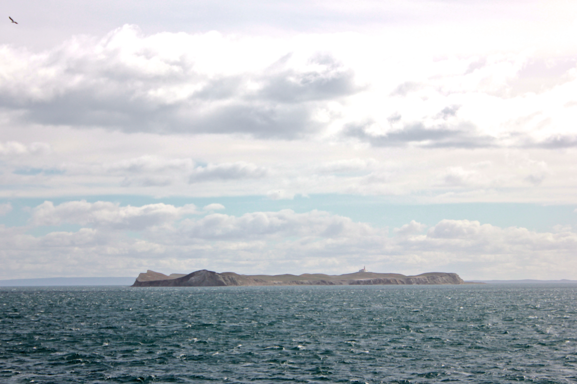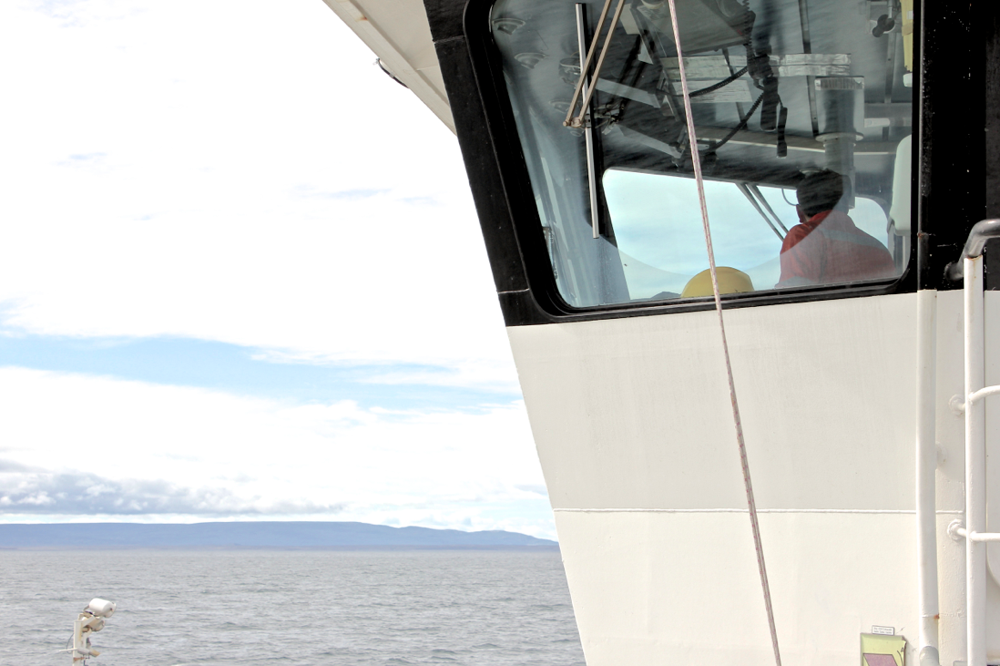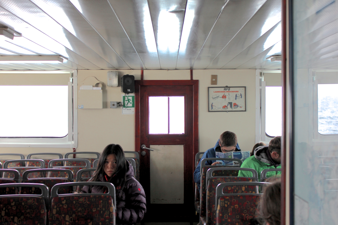 Je me faisais à peine à l’idée d’avoir véritablement les pieds à Punta Arenas, dernière « grande » ville de la Patagonie et capitale de la région, que déjà j’allais plus loin en empruntant le Détroit de Magellan en compagnie de passagers hétéroclites, certains fatigués qui regardaient le vide avec le plus grand calme du monde, d’autres – touristes comme moi – échouant lamentablement à contenir leur excitation de flotter sur les eaux qui joignent dans l’extrême sud du continent le Pacifique à l’Atlantique. Les déplacements en traversier sont monnaie courante dans la région : les touristes, en ce début de saison haute, sont parfois aussi nombreux à bord que les habitants de la région qui se dirigent vers le travail ou qui retournent à la maison ; leur visage accoutumé à l’horizon insulaire n’est qu’un aspect de ce drôle de groupe que nous formions, placés là, en plein milieu d’un mince fil d’océan, entre Punta Arenas et la Terre de Feu.