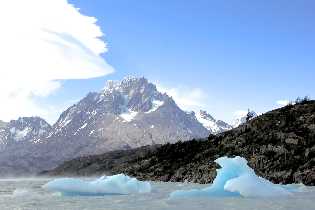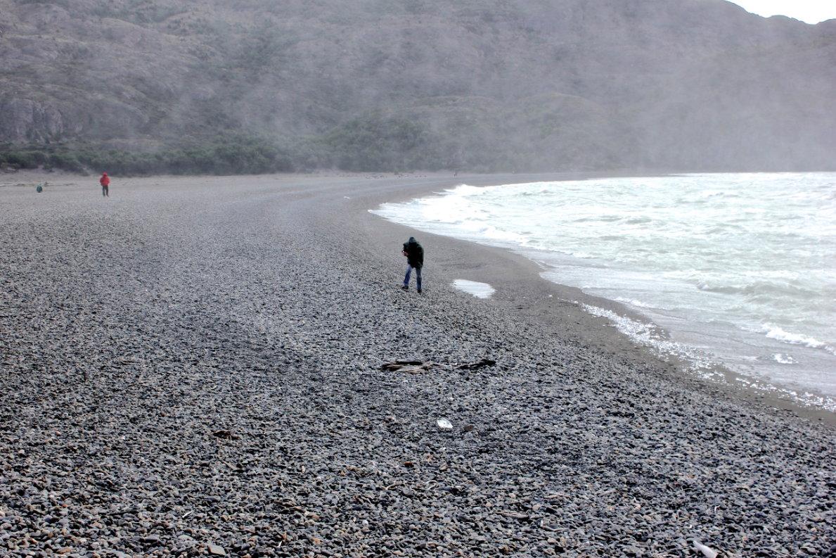 Les couleurs de la Patagonie sont trompeuses. À travers la vitre d’une voiture, d’un traversier ou d’un autobus, l’apparente quiétude du paysage vert, bleu et rose est renforcée par une végétation basse et par l’immobilité parfaite des cyprès. Entouré de touristes néophytes, seul le conducteur connaît l’aridité de ces paysages magnifiques, seul lui connaît la violence du vent qui transporte les deux grandes menaces du sud du pays : le froid transperçant la peau, les vagues indomptables. Ici, les plages et les montagnes ne servent qu’à être vues. La nature de la Patagonie, par sa beauté et sa violence, appelle à la contemplation ou encore aux défis auxquels s’adonnent surfers, randonneurs, campeurs et autres amateurs de sports plus ou moins extrêmes. Je ne fais pas partie de ce type de voyageurs, pourtant je me suis senti tout aussi soumis à la force de la nature lorsque, dangereusement placé au bord d’un précipice offrant une vue spectaculaire sur les Torres del Paine ou tenu en équilibre devant le glacier Grey, je jouais mi amusé mi apeuré avec des bourrasques si puissantes que l’éventualité de voir mon corps se fracasser contre les rochers ou s’engloutir dans les vagues était tout à fait probable. Si à Atacama je me voyais bien mourir de déshydratation, en Patagonie souvent j’ai cru que le paysage pouvait m’avaler.