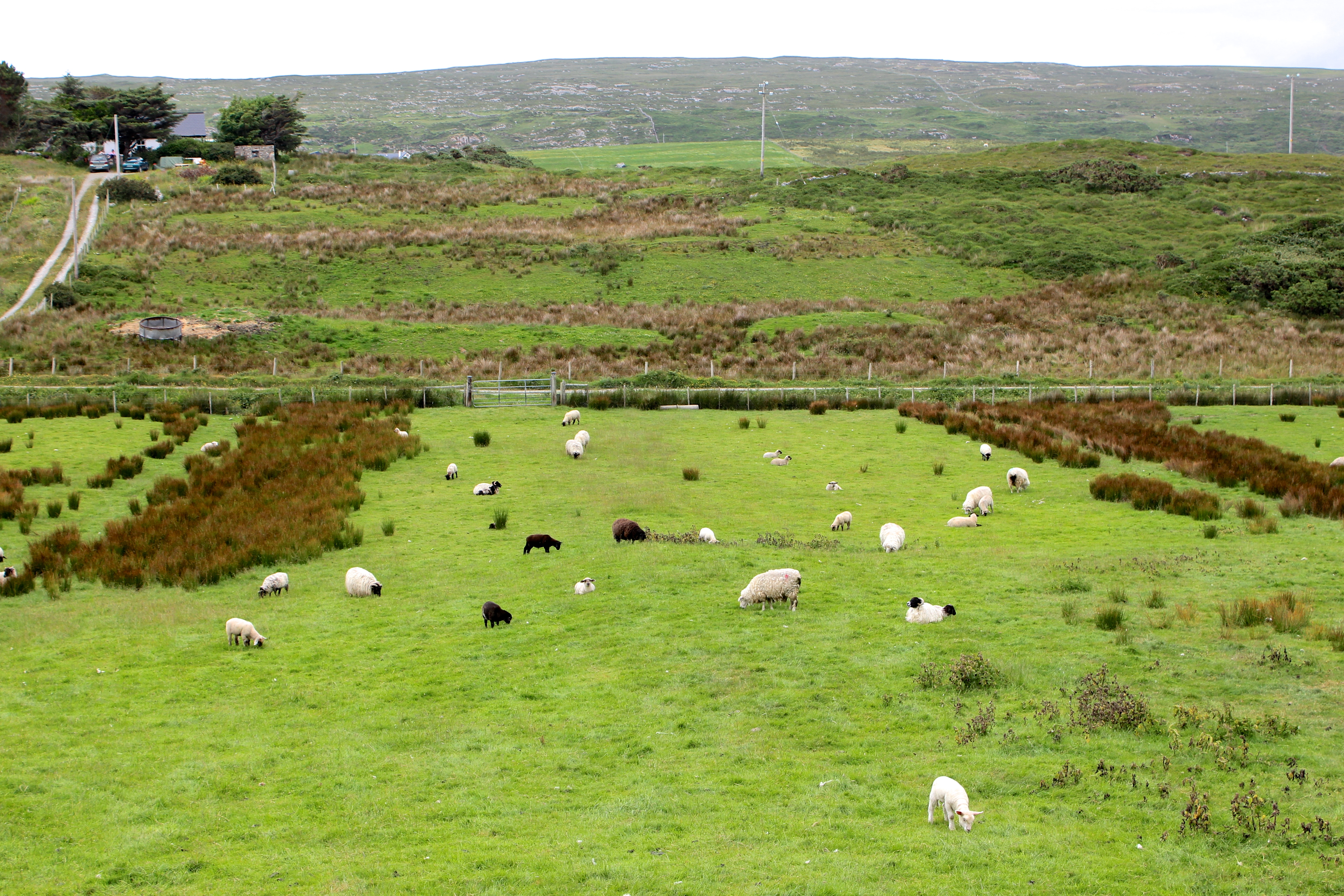Cette fois, c’est à Clifden que nous nous rendions, vers cette petite ville de 1200 habitants, belle, mignonne, victorienne et, oui, touristique. En s’y rendant, de magnifiques paysages se donnent en spectacle : de Galway, il faut sillonner des vallées, des rivières, des fermes et des champs vastes sur lesquels des animaux sont posés sporadiquement, presque négligemment. Je les verrai sans doute de plus près, je me suis dit, plus lentement. Et c’est de plus près que nous les avons vus, ces moutons, ces vaches, ces chevaux, ces ânes ; c’est lentement, à vélo ou en marchant, que nous avons profité de la liberté de s’arrêter pour contempler les paysages et les penser, les lire, les écrire. Les photographier.