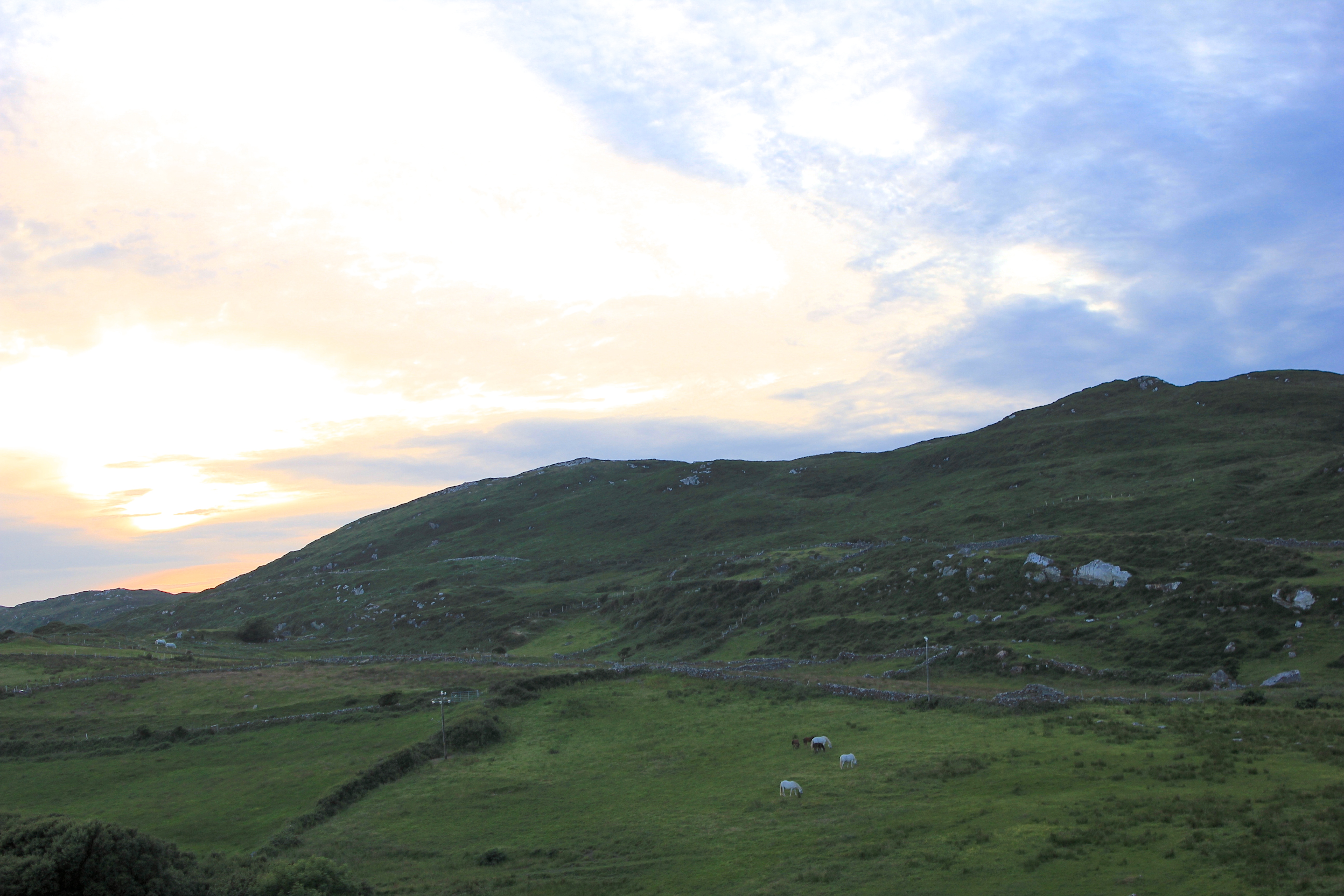Organiser un séjour en campagne irlandaise n’est pas de tout repos : rapidement on peut se sentir accablé par le nombre incalculable de villages dans lesquels il est possible de se poser pour amorcer des randonnées en montagne ou au bord de la mer. Considérer tel ou tel endroit s’accompagne souvent de lectures et de recherches frénétiques sur le web jusqu’à ce que, lassé des commentaires relevés et des difficultés rencontrées en cours de route, on choisisse de façon plus ou moins aléatoire un village sélectionné selon une logique plutôt précaire. Voyager sans voiture et avec un budget limité peut donner lieu à bien des dilemmes qu’on résout au final en assumant que tout voyage qui sort des circuits habituels et surtout des grandes villes s’organise avec une ouverture importante au risque et au hasard.