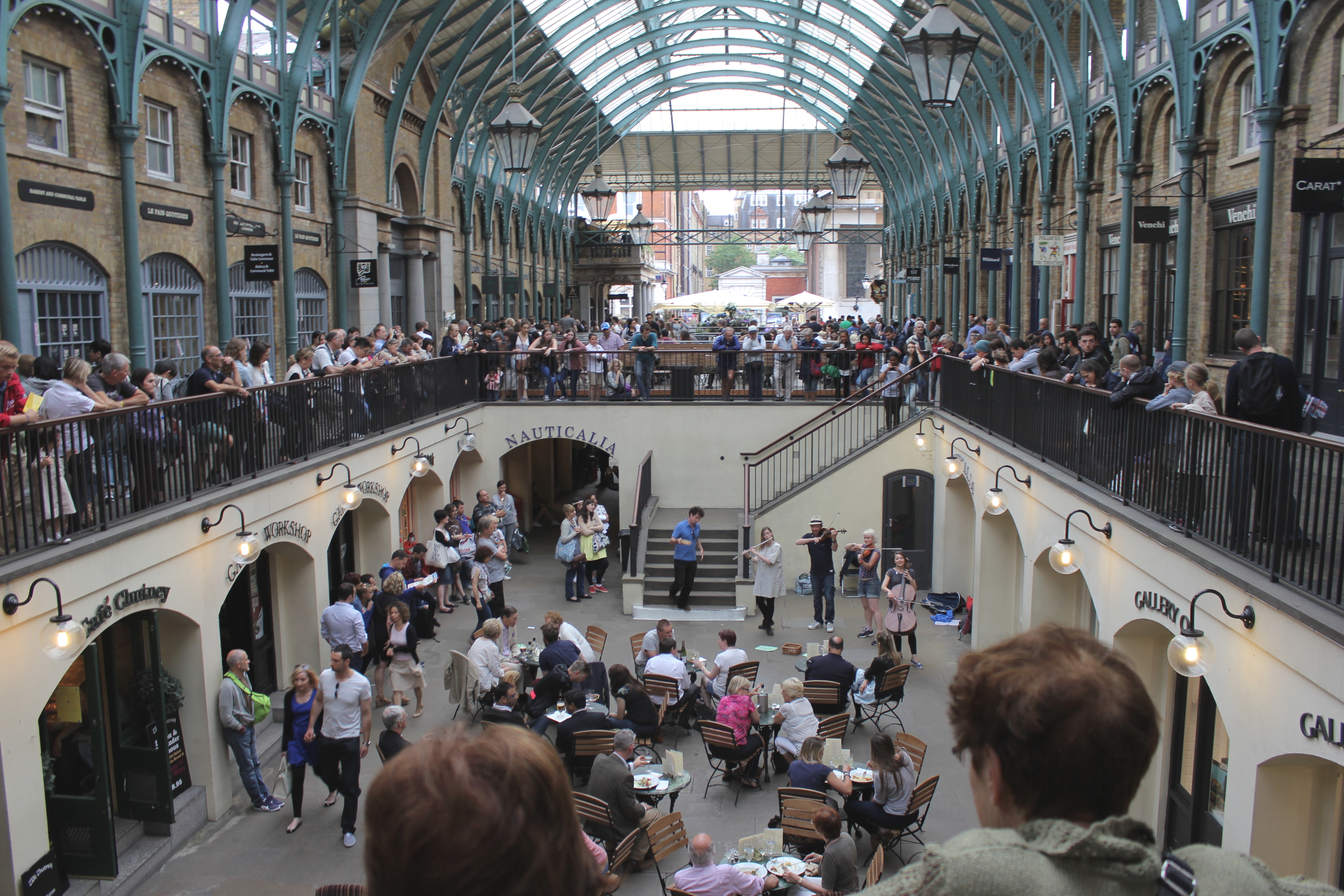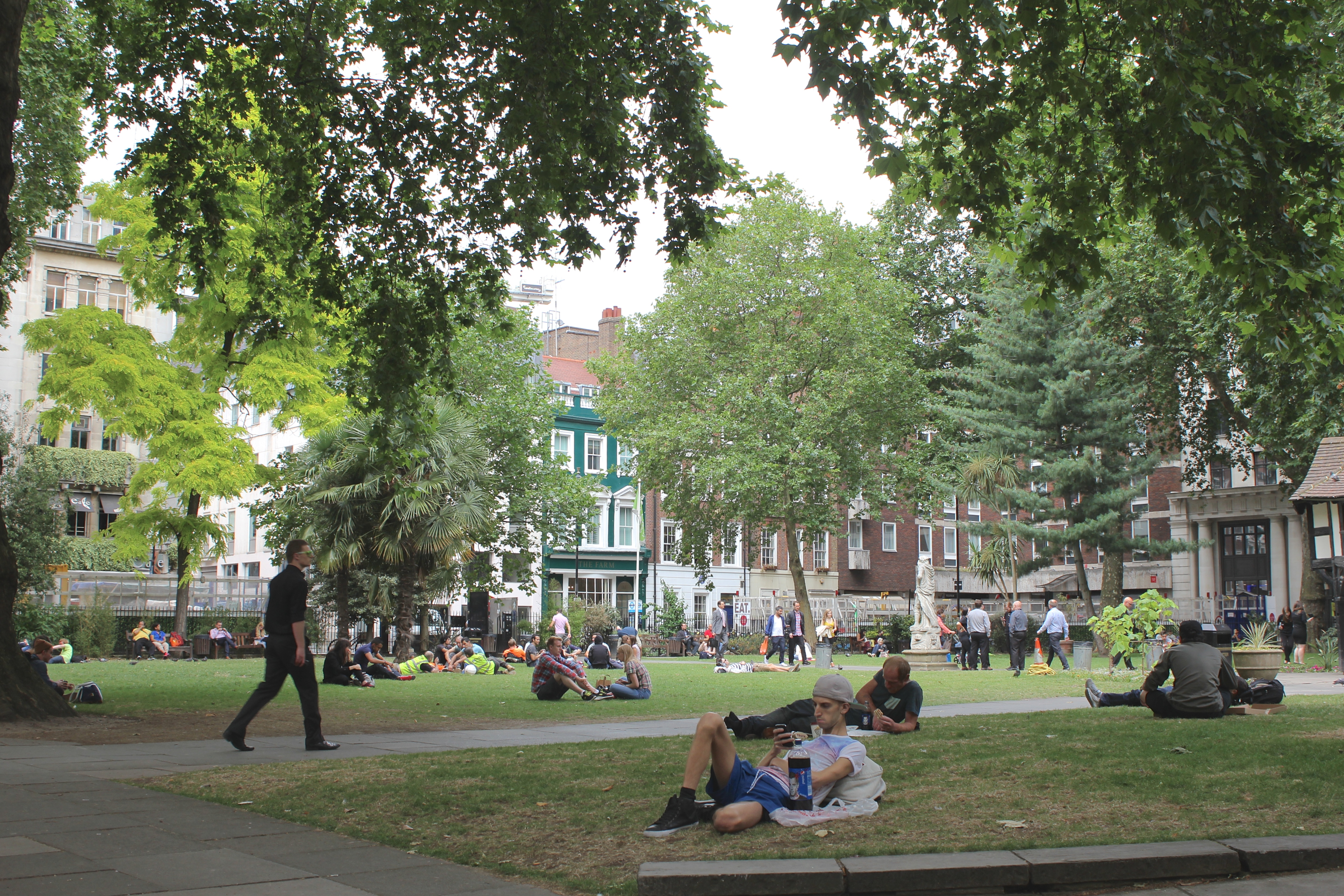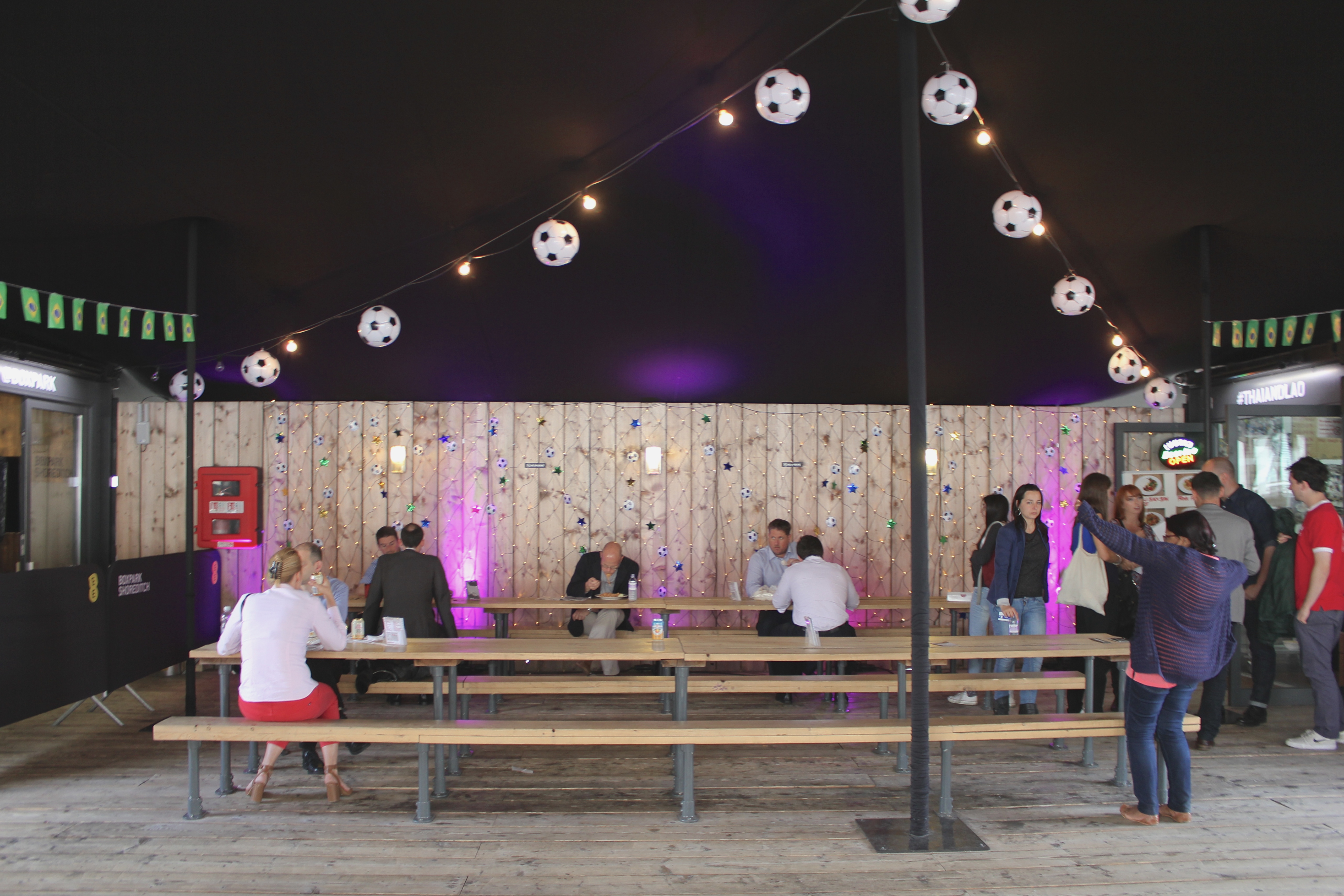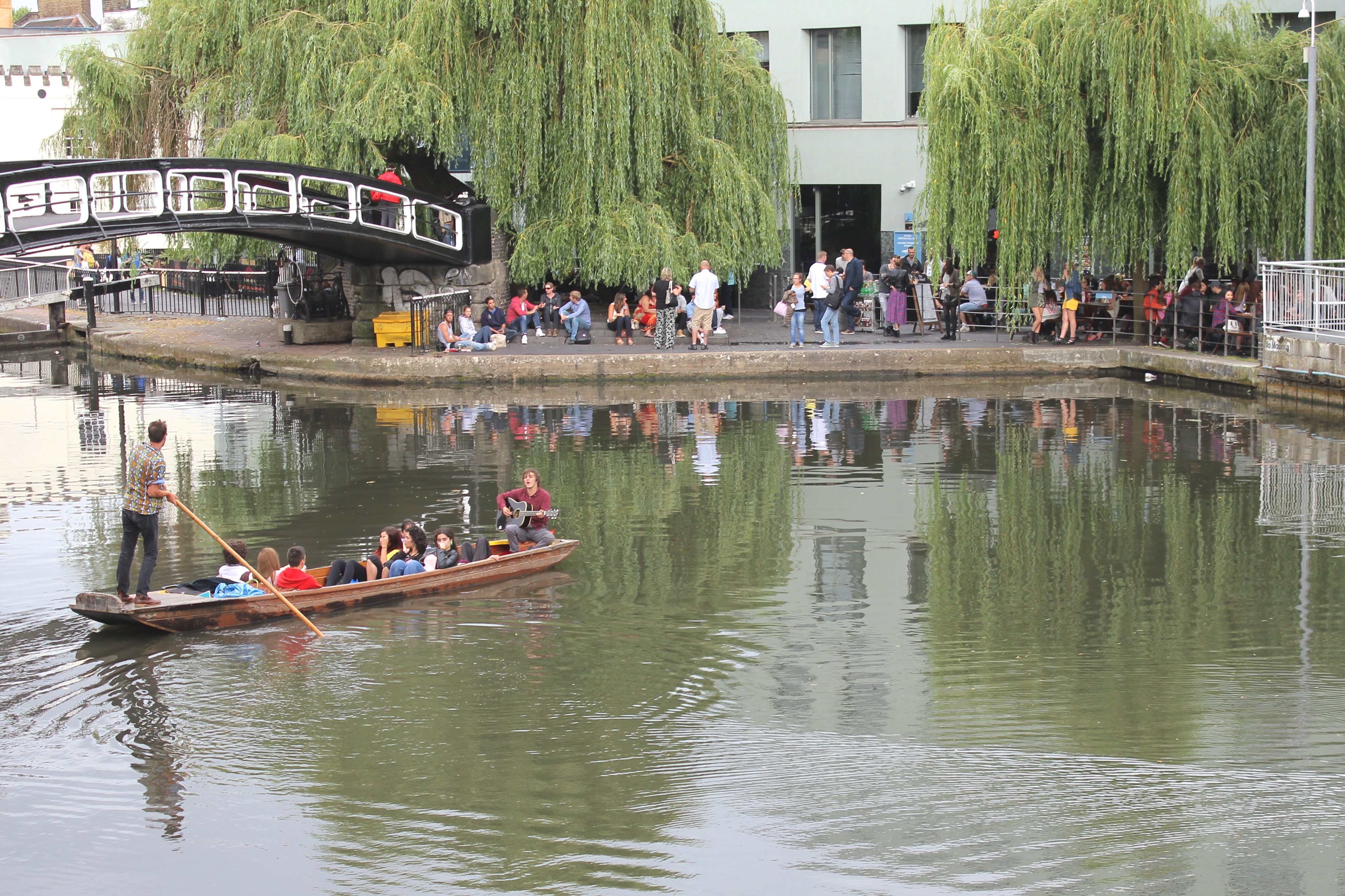 Tout au long de nos déambulations dans les différents quartiers de Londres, nous butions contre des tables, des chaises, des verres et des gens installés pour manger, boire et discuter. C’est le « déboulement » à Londres qui m’a le plus marqué : partout où nous passions – dans une ruelle entre deux buildings et dans des anciens containers de Shoreditch, dans un espace bétonné jadis vacant, dans des installations d’un marché abandonné de Brixton, sur une rue piétonnière d’Angel, dans les passages du Camden Lock, dans un chantier fermé pour la fin de semaine, dans le Borough Market – se trouvaient un marché public, une terrasse improvisée, un endroit parfait pour se nourrir de repas du monde entier faits sur place, pour boire une bière locale ou un cocktail préparé sous nous yeux. Contrairement aux food trucks trop chers, trop élitistes et trop règlementés de Montréal, ces cuisines publiques londoniennes répandaient à tous les jours une ambiance de liberté et d’une certaine justice (le prix de plusieurs de ces mets étaient dérisoires), tuant du même coup une drôle de réputation dont souffre la ville auprès des étrangers : à Londres, contrairement à ce que certains disent, on mange terriblement bien. Non seulement on mange bien, mais on mange librement sur le bord d’un trottoir ou d’un cours d’eau, devant un arbre ou une église, assis sur l’asphalte, sur l’herbe, sur un banc de parc ou sur un mobilier de fortune installé expressément pour déguster ce repas délicieux – curry indien, pulled pork, sandwich au rôti de bœuf, pad thai, paella, scotch egg, burger, fromages, charcuteries, pain, café latte de troisième type, thé, scones aux confitures et à la clotted cream. À tous les jours, on peut tomber sur un de ces endroits magiques (et pourtant si banals pour plusieurs tant ils sont nombreux) sans avoir à vérifier d’avance, à réserver.