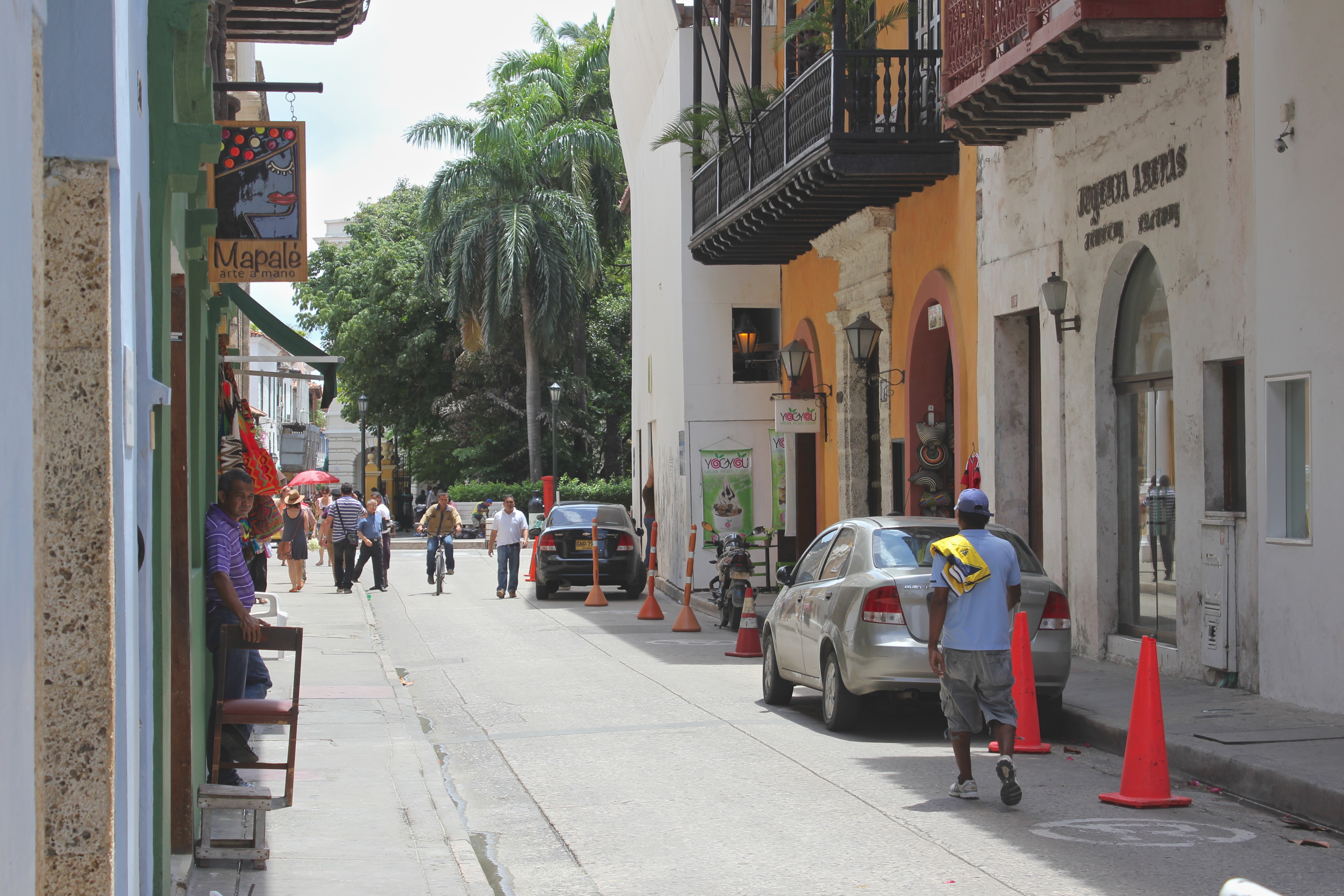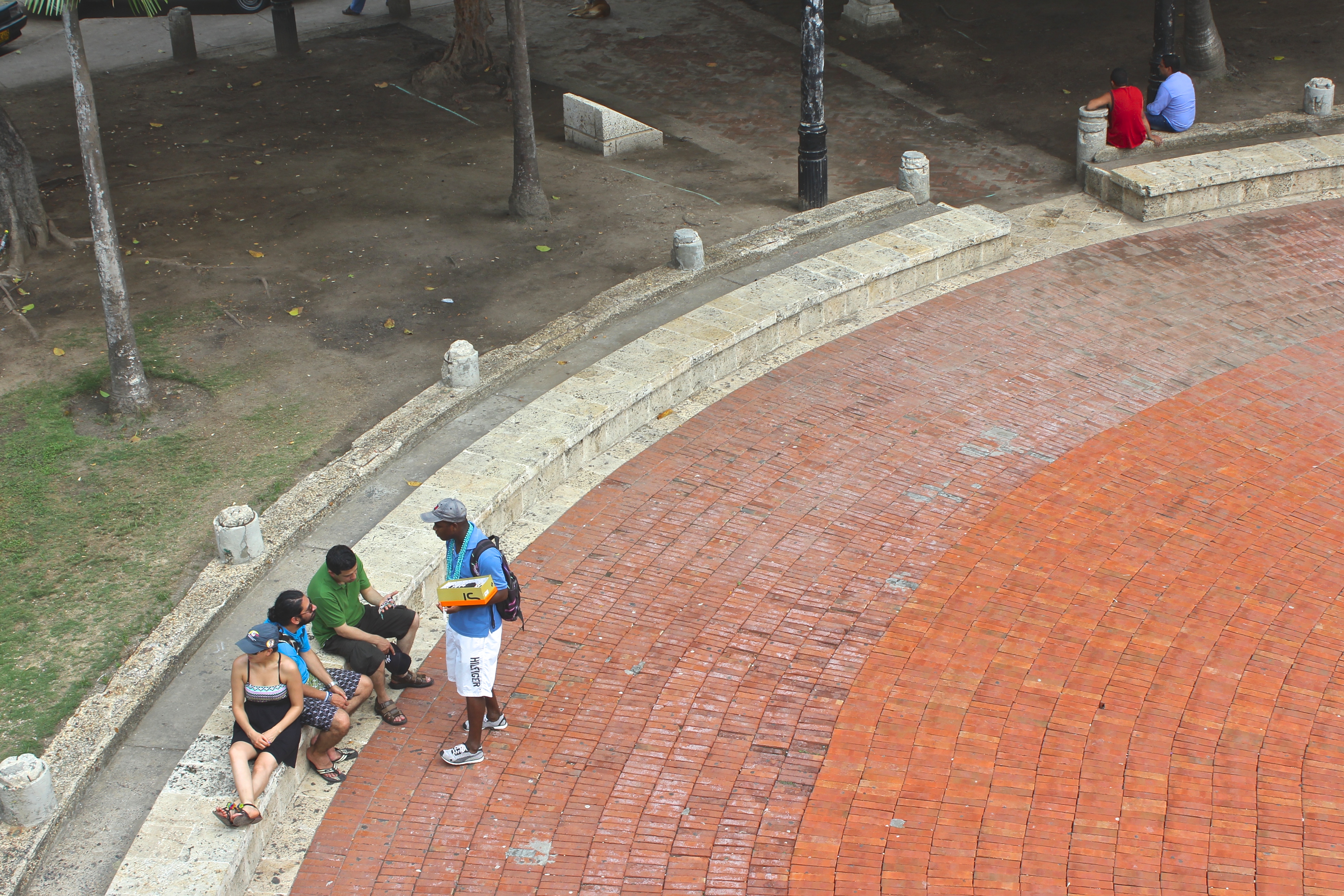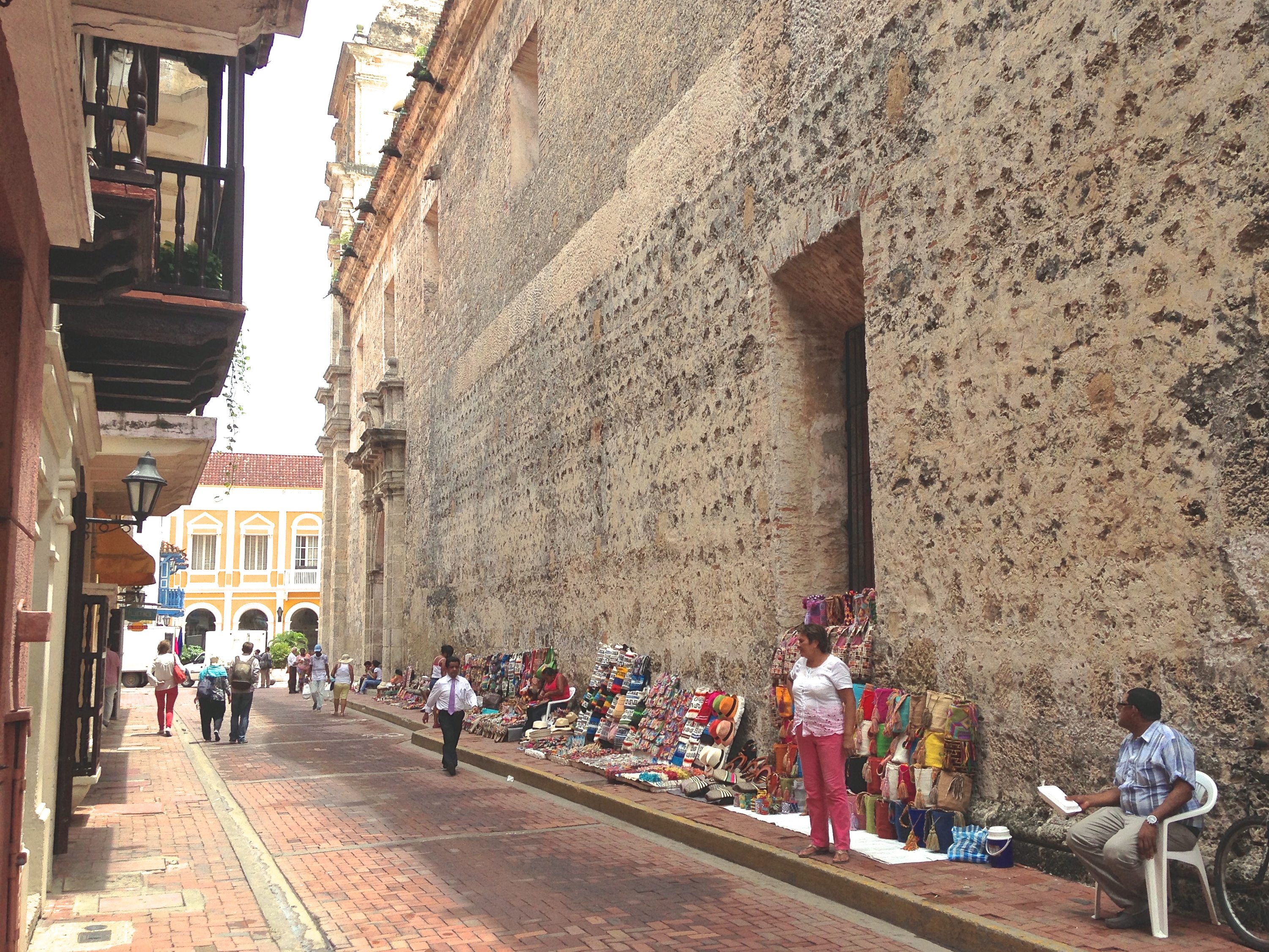 Des horreurs, d’ailleurs, on m’en a raconté avant de quitter Montréal : on m’a dit maintes fois de faire attention parce que la Colombie est un pays dangereux, rempli de malfaiteurs, de voleurs, de kidnappeurs ; suffit de s’informer sur l’état actuel du pays pour comprendre bien vite que cette réputation est aujourd’hui caduque. Les problèmes de rapts, de vols, d’assassinats et de régions entières aux mains des cartels de la drogue sont aujourd’hui des exceptions qui réveillent de très sombres souvenirs chez les Colombiens qui sont, au final, les premiers à en avoir souffert et qui se sont battus de toutes sortes de façons pour mettre fin à ces atrocités qui faisaient fuir les habitants et tenaient les touristes à distance. Néanmoins, alors que j’errais à Cartagena, la ville la plus touristique du pays m’a-t-on dit, j’ai dû me rendre à l’évidence : bien que je ne craignais pas à tout moment de me faire kidnapper, quelque chose dans l’air exerçait une pression. Peut-être est-ce à cause de la météo, lourde et exténuante, ou de ce mur qui enferme le centre historique, qui le contient bien serré et qui semble tendre l’air dans son enceinte. On se promène plus ou moins lentement entre voitures, travailleurs, étudiants, mendiants, vendeurs ambulants, policiers, hommes d’affaires, touristes de toutes sortes, bandes de jeunes et de moins jeunes qui flânent, et il arrive qu’on partage avec eux un regard plutôt hagard sans raison apparente, un drôle d’échange comme si la crainte du passé était venue s’installer entre soi et l’autre le temps d’un coup d’œil. On croise des personnes qu’on trouve un peu louches, puis on se sent horriblement nord-américain à juger ainsi les autres, à se méfier sans arrêt, jusqu’à ce qu’on tombe sur un homme qui veut trop aider le visiteur à comprendre l’histoire du centre-ville et qui, à brûle-pourpoint, donne un cours beaucoup trop détaillé sur Cartagena, de la mer aux monts, en même temps qu’il jette des drôles de regards à gauche et à droite vers un vendeur de bracelets suivi d’un vendeur de coquillages suivi d’un vendeur de cigarettes. Cette histoire s’est bien terminée : j’ai arrêté net le discours de l’homme en lui disant que j’étais ici « pour le travail », que j’étais attendu, qu’il pouvait dire à ses compadres de foutre le camp et d’aller voir quelqu’un d’autre. Ma stratégie a fait échouer la leur ; sans doute réussiront-ils avec d’autres touristes, qui sait, peut-être avec un couple à la retraite. Nous avons échangé quelques paroles et quelques rires, puis il a dit pásalo bien, amigo, y cuidado con los tipos como yo.